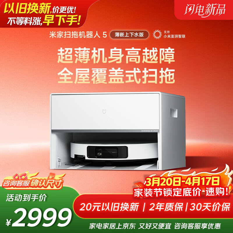 米家新品 小米扫拖机器人5 超薄机身扫地机器人扫拖一体自动清洗全自动上下水