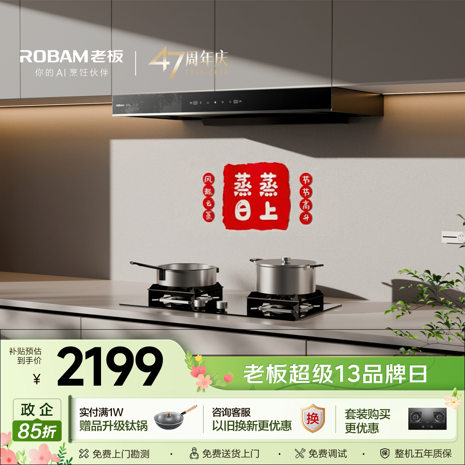 老板欧式顶吸60A0排抽吸油烟机23风量家用大吸力一级能效配燃气灶具以旧换新政府补贴免费上门安装