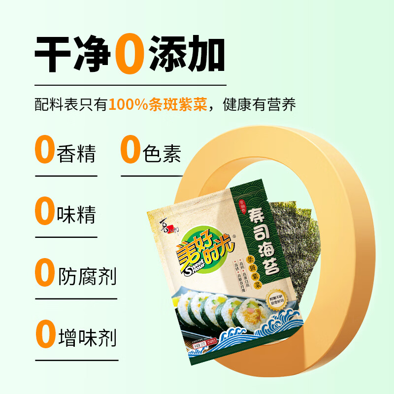 美好时光寿司海苔14大张共37g 大片紫菜韩式包饭 儿童每日海苔即食零食