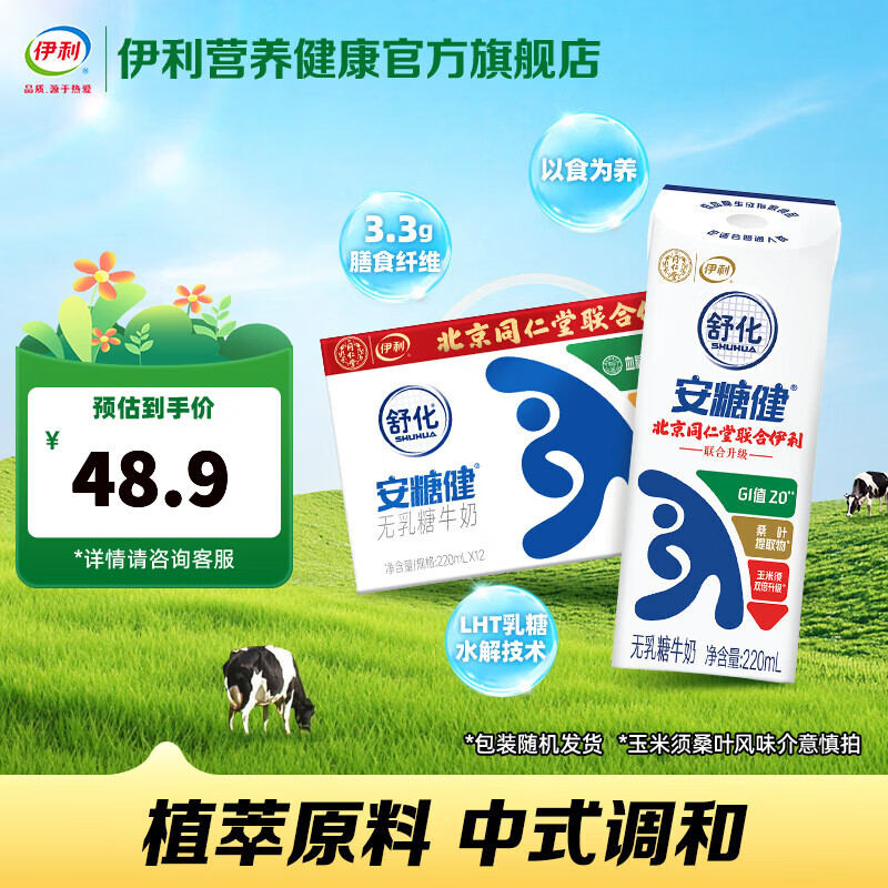 伊利舒化安糖健牛奶 0乳糖 220ml*12盒/箱 礼盒装 1月产