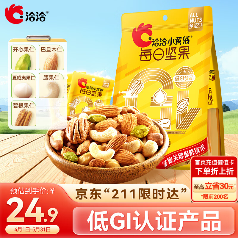 洽洽低GI每日纯坚果100g(20*5袋)混合干果仁低升糖孕妇健身营养零食