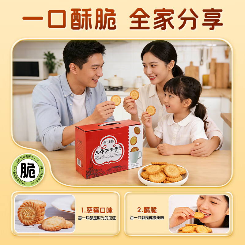 三牛万年青香葱饼干 上海特产老式怀旧休闲零食 节日礼盒装800g