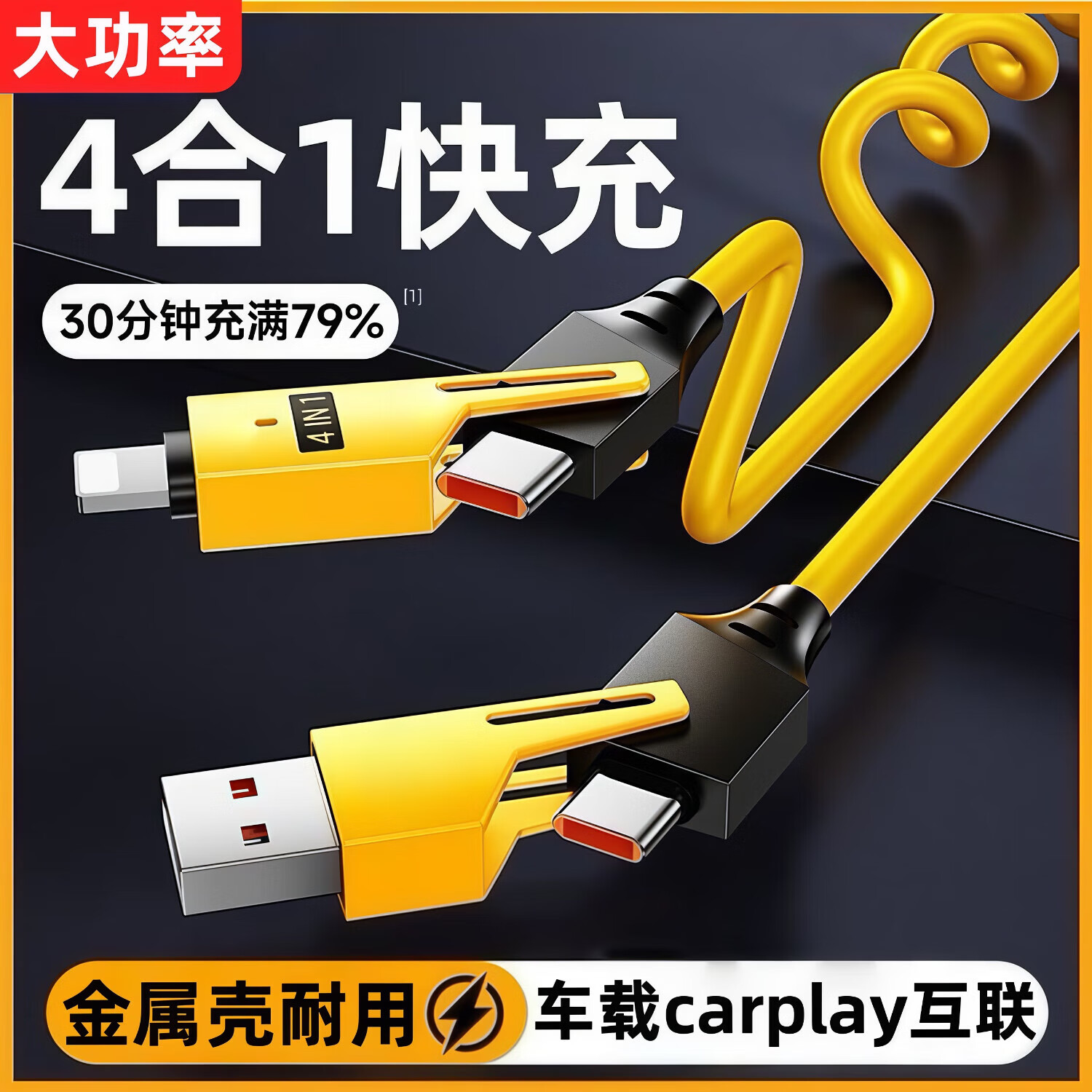 四合一弹簧数据线车载互联carplay大功率65W超级快充适用苹果15/16/17华为荣耀小米三星VIVO万能型 粉色 可拉至1.5米