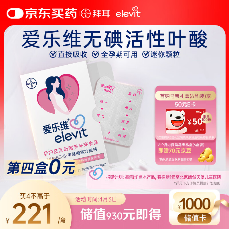爱乐维中国版活性叶酸孕妇维生素 无碘配方 备孕哺全孕期国产 28片