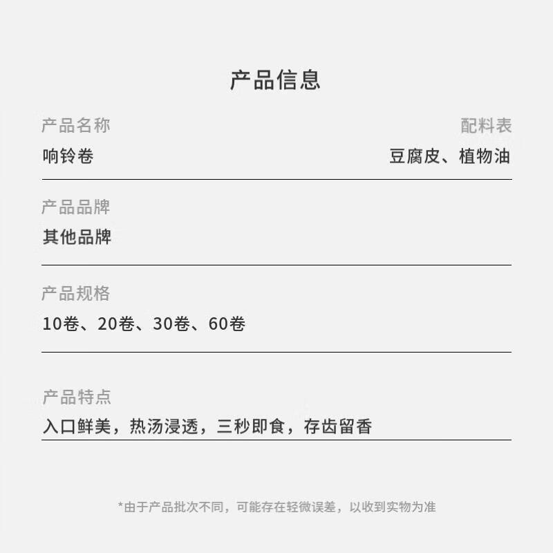 【火锅食材】响铃卷麻辣烫食材油炸腐竹皮螺蛳粉整袋净重80g/袋 10卷 4.5g