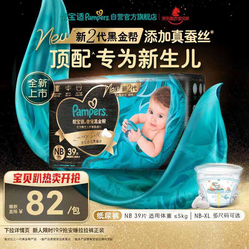 帮宝适新生儿顶配黑金帮纸尿裤婴儿尿不湿尿片添加真蚕丝NB39