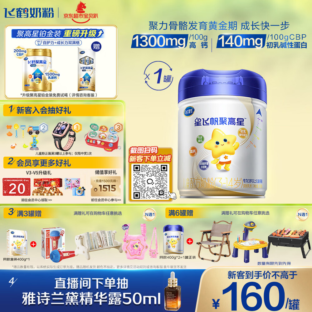 飞鹤星飞帆聚高星A2乳铁蛋白高钙CBP儿童成长奶粉4段(3-14岁)800g*1罐