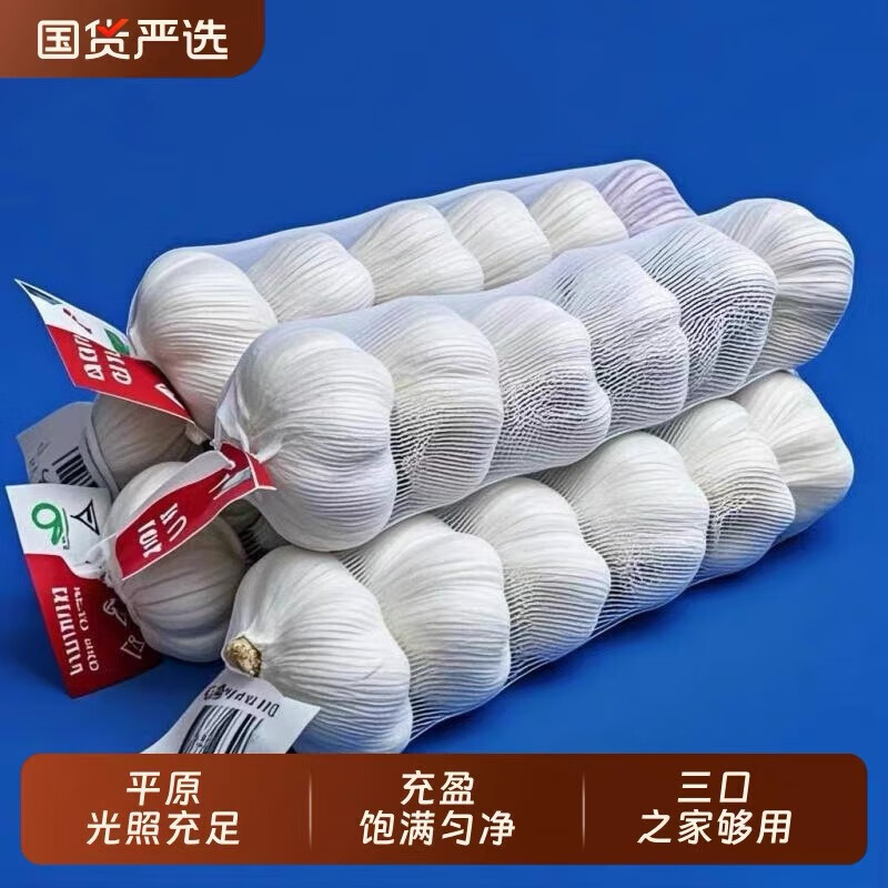 大蒜精装出口蒜出蔬菜水果调料牛肉生蚝小龙虾食材 山东出口标准网兜装袋3头净重70g 中果直径4cm