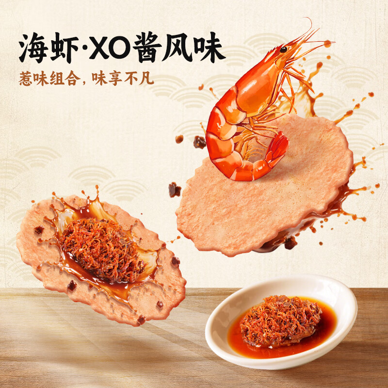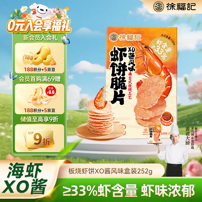 徐福记板烧鲜脆虾饼XO酱风味 虾饼盒装252g内含56片 解馋零食分享装