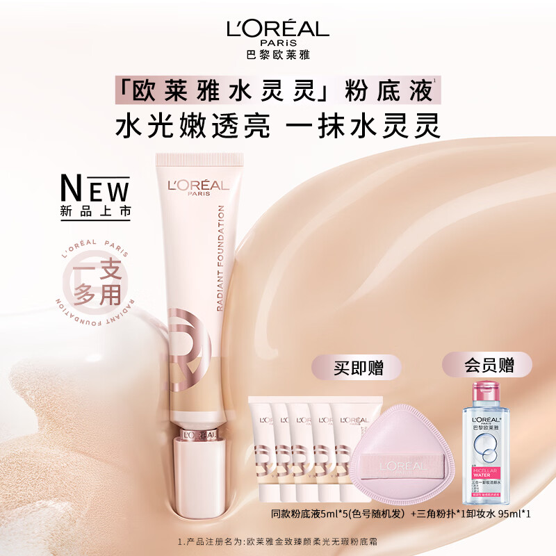 欧莱雅水灵灵粉底液W10防晒水润保湿轻薄不卡粉生日礼物送女友