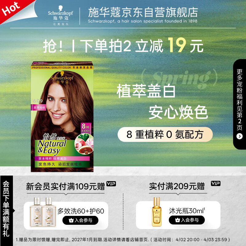 施华蔻(Schwarzkopf)怡然染发霜5.0/9麦芽浅棕 染发剂植物染发膏自己染男女盖白发