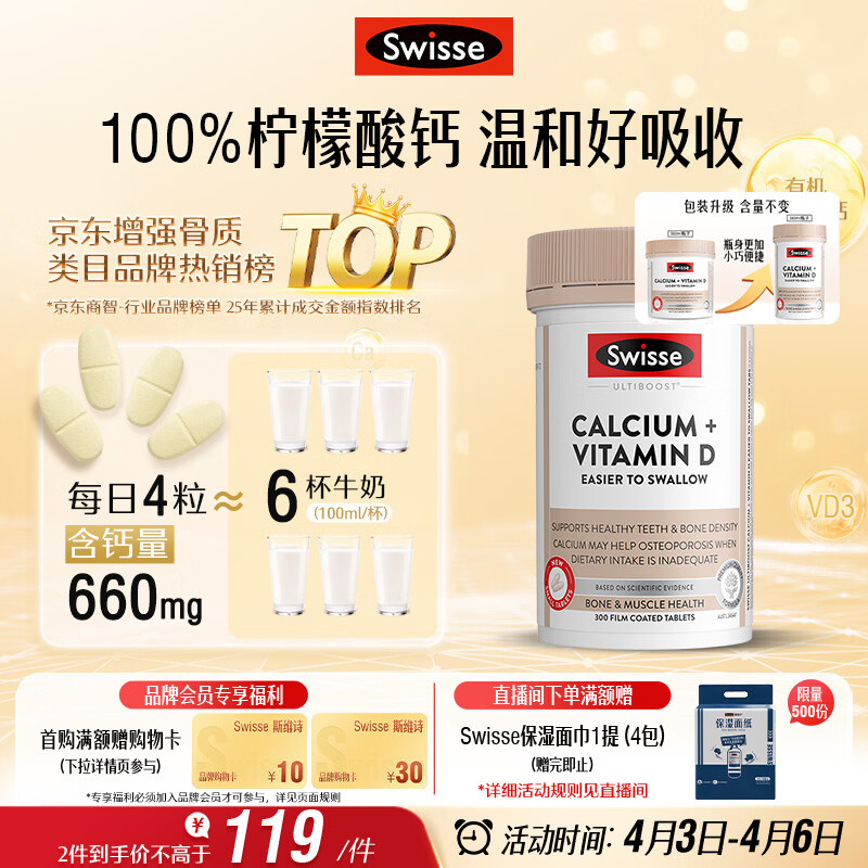 Swisse斯维诗 钙片+维生素D迷你钙片 中老年成人孕妇补钙 柠檬酸钙300片