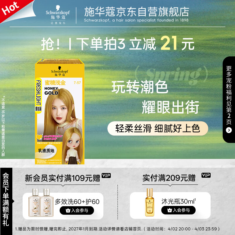 施华蔻(Schwarzkopf)斐丝丽染发剂7-57蜜糖浅金 染发膏自己染染发剂潮流彩染韩系显白