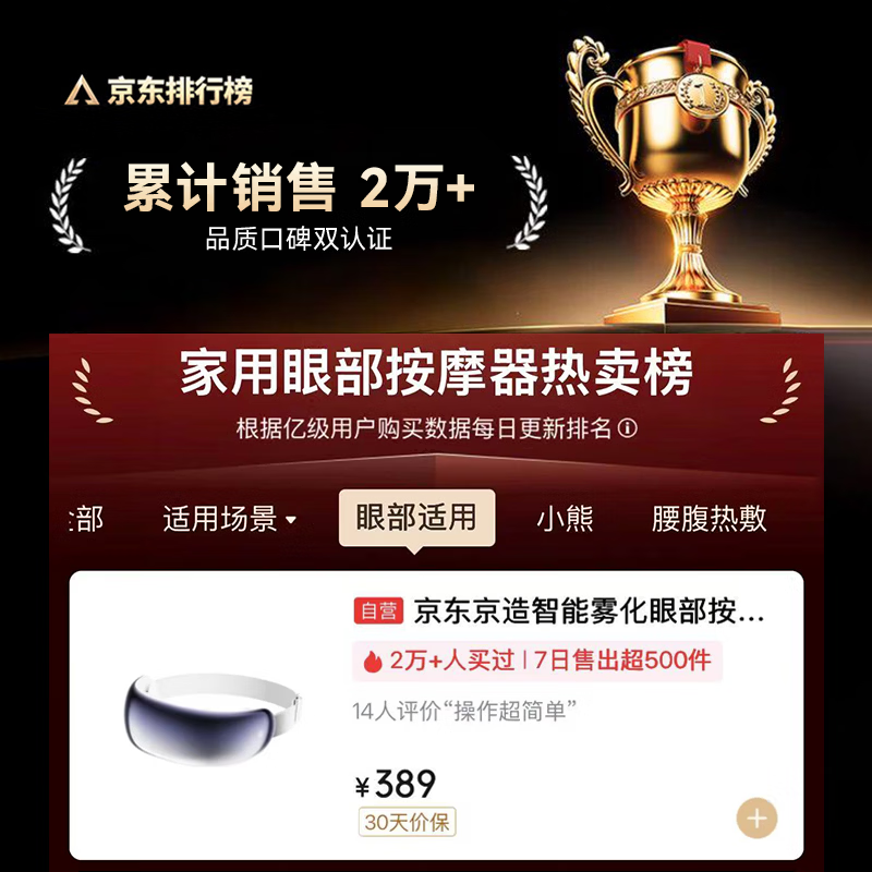 京东京造智能雾化眼部按摩仪E9 点振眼部按摩器蒸汽眼罩热敷干眼润眼仪成人儿童护眼仪 生日礼物送男女朋友