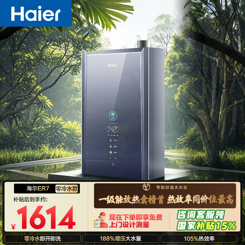 海尔【E系列ER7零冷水】16升一级能效节能 水伺服恒温 增压大水量【国家补贴15%】 燃气热水器