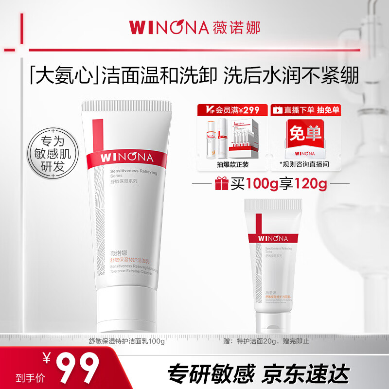 薇诺娜特护洁面乳100g氨基酸补水保湿洗面奶男女护肤品敏感肌