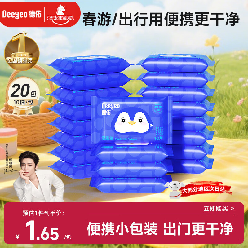 德佑【侯明昊推荐】便携装湿厕纸10抽20包 出行清爽清洁湿纸巾卫生纸