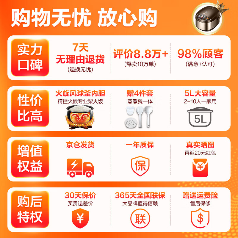 苏泊尔【热销10万+】电饭煲5L电饭锅家用大容量4-5人球釜内胆智能预约多功能煮饭锅微压5-8煲汤做蛋糕3-4 香槟色【一键香弹煮】大容量 5L