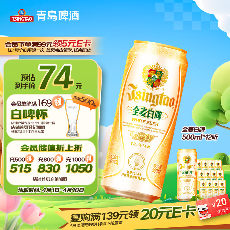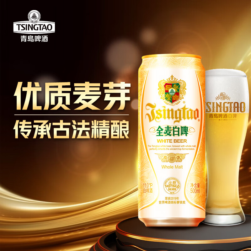青岛啤酒(TsingTao)精酿全麦白啤 浓郁麦香古法酿造500ml*12听踏春送礼
