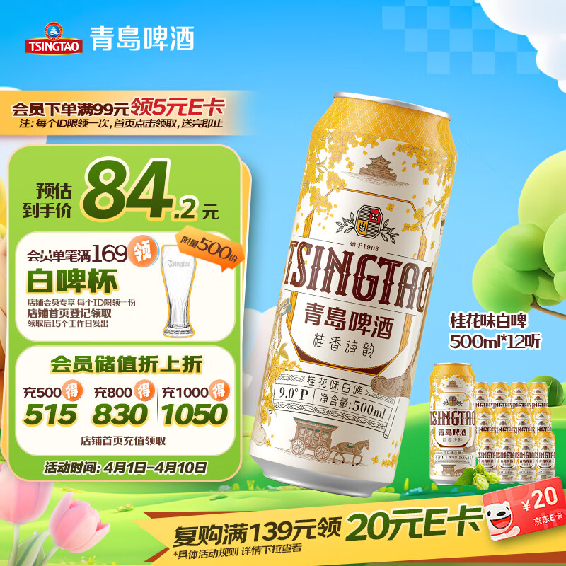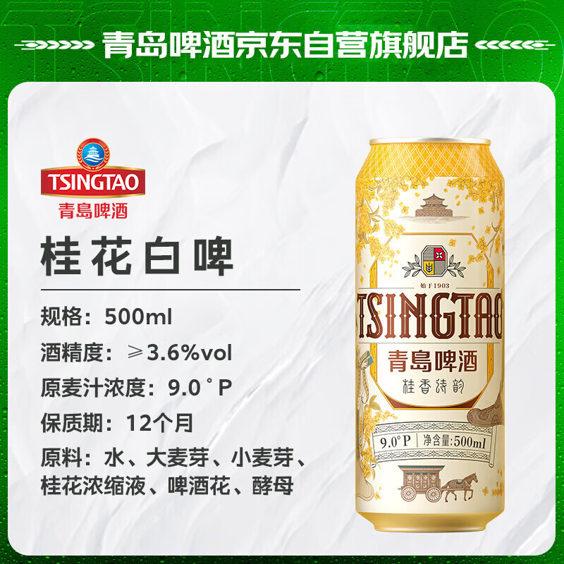 青岛啤酒(TsingTao)桂花味白啤 500ml*12听 整箱装踏春送礼