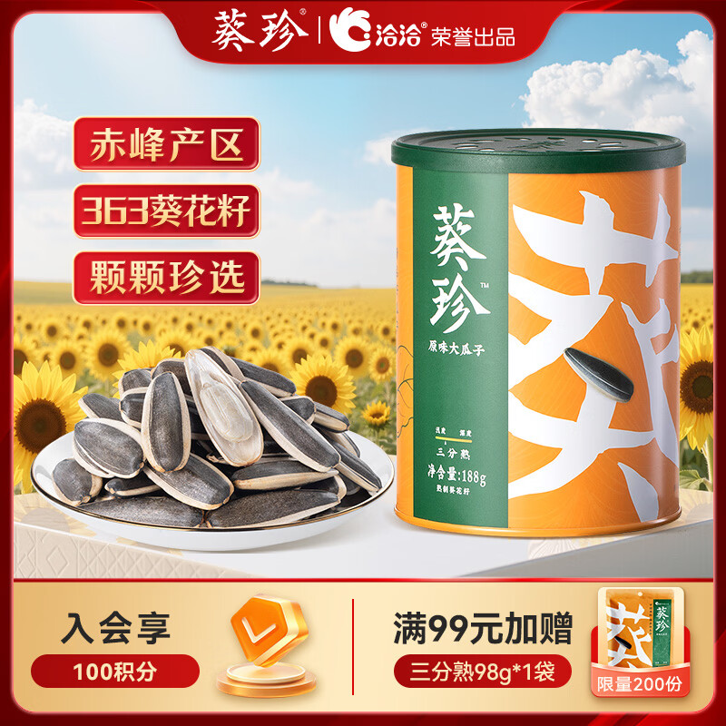葵珍恰恰高端原味大瓜子葵花籽三分熟188g休闲零食坚果炒货企业团购