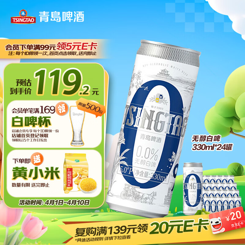 青岛啤酒(TsingTao)无醇白啤 330ml*24罐 整箱装踏春送礼