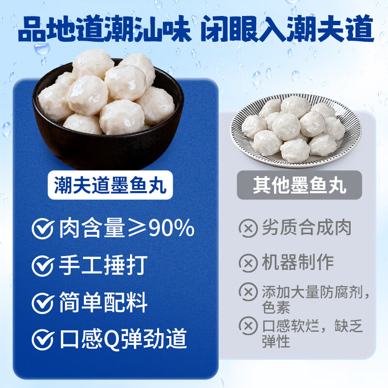 潮夫道潮汕墨鱼丸250g*2包手打鱼丸关东煮空气炸锅麻辣烫烧烤火锅食材