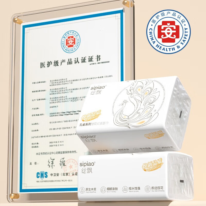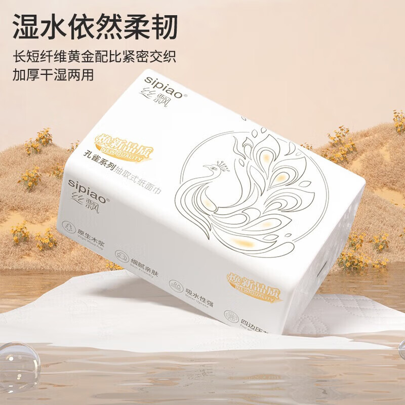 【超值】丝飘抽纸巾医护级大包加厚餐巾纸家用面巾纸母婴用纸 5层 420张*4包