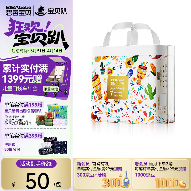 碧芭宝贝丛林狂想曲拉拉裤 婴儿成长裤宝贝训练裤透气大号尿不湿 拉拉裤XXXL26片(18kg以上)
