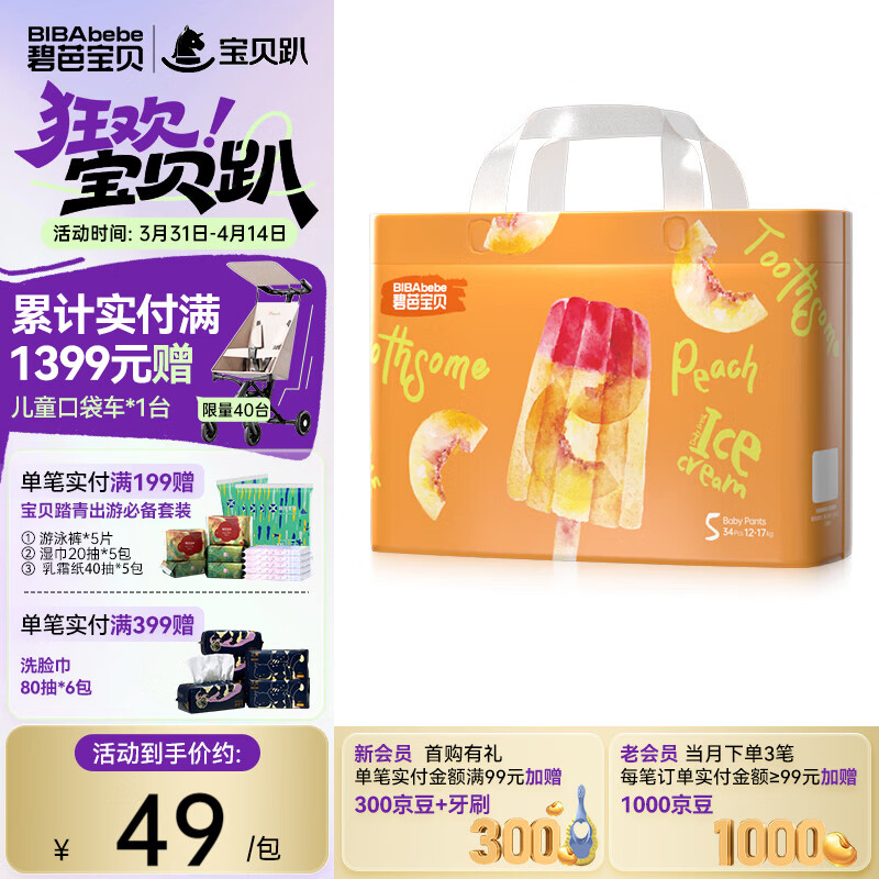 碧芭宝贝冰淇淋special拉拉裤 夏日超薄透气加大号婴儿宝宝尿不湿 拉拉裤XL码 34片(12-17kg)