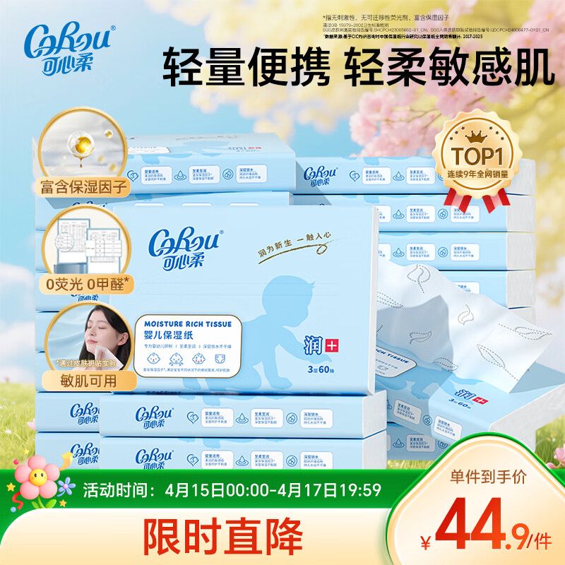 可心柔婴儿纸巾乳霜纸宝宝专用抽纸3层60抽20包亲肤柔纸巾乳霜纸抽纸