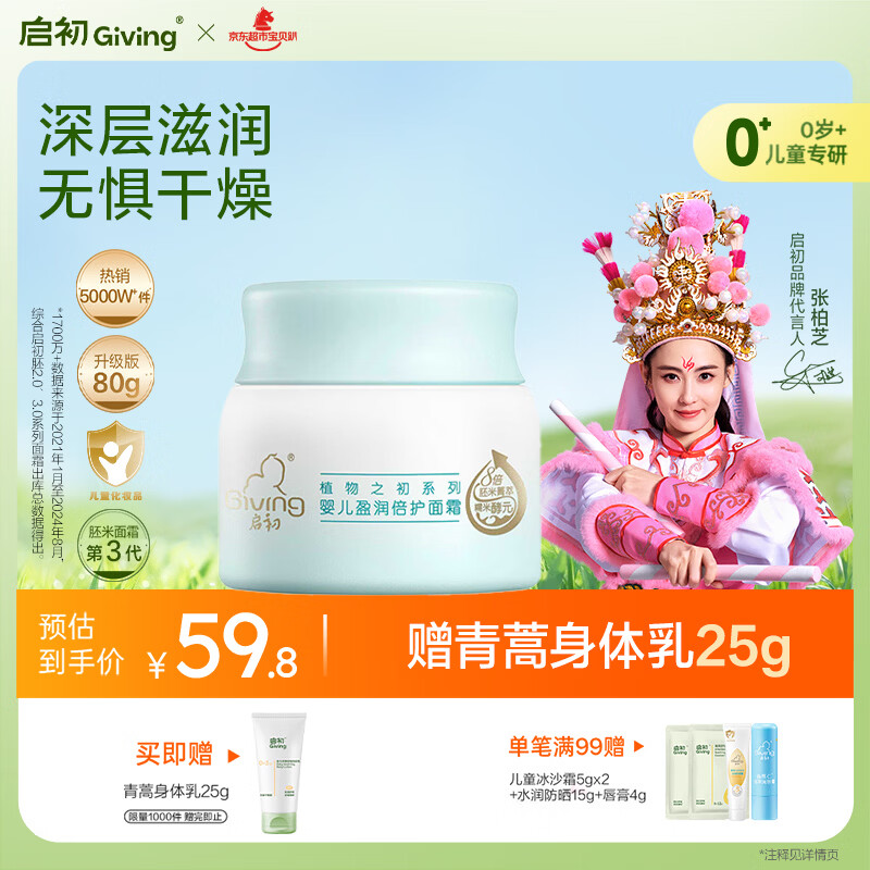 启初胚米3.0婴儿盈润倍护面霜80g儿童面霜宝宝保湿温和润肤滋润护肤