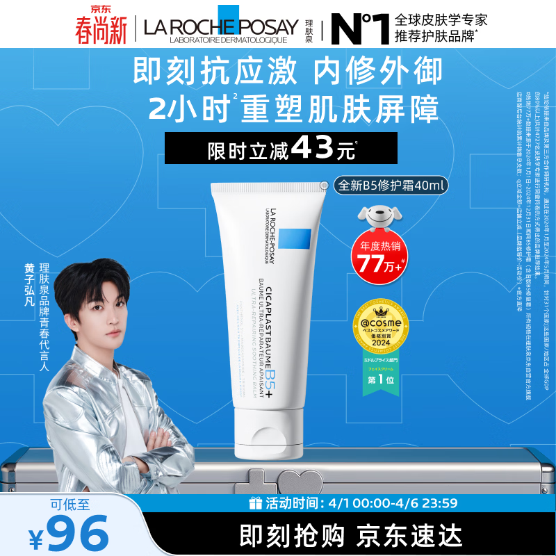 理肤泉【黄子弘凡同款】B5霜40ml修护舒缓泛红保湿面霜护肤品生日礼物