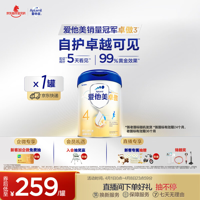 爱他美(Aptamil)爱他美 卓傲儿童配方奶粉 3-6岁800g 新老国标随机
