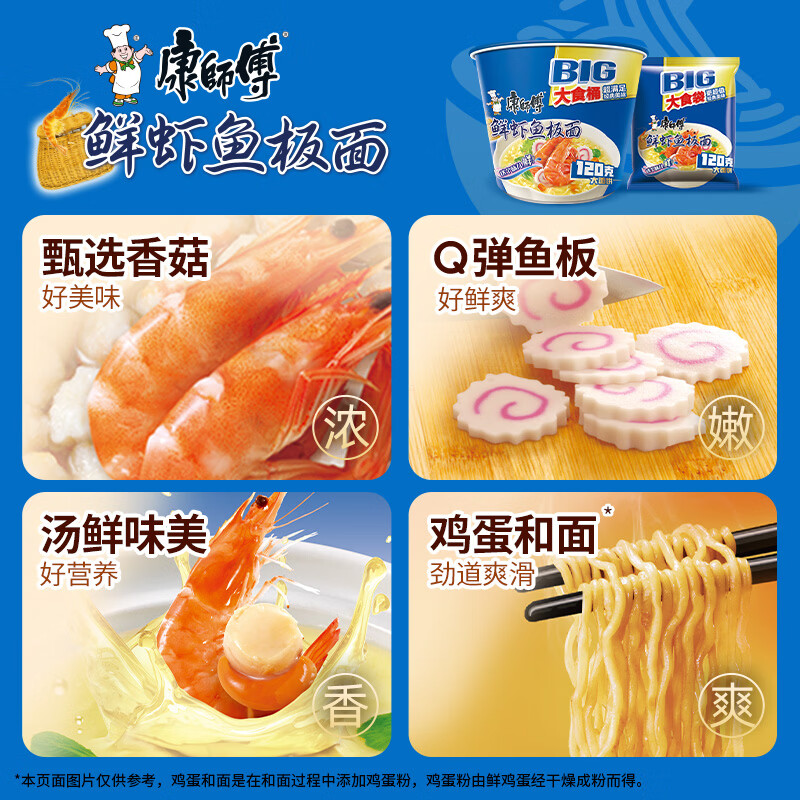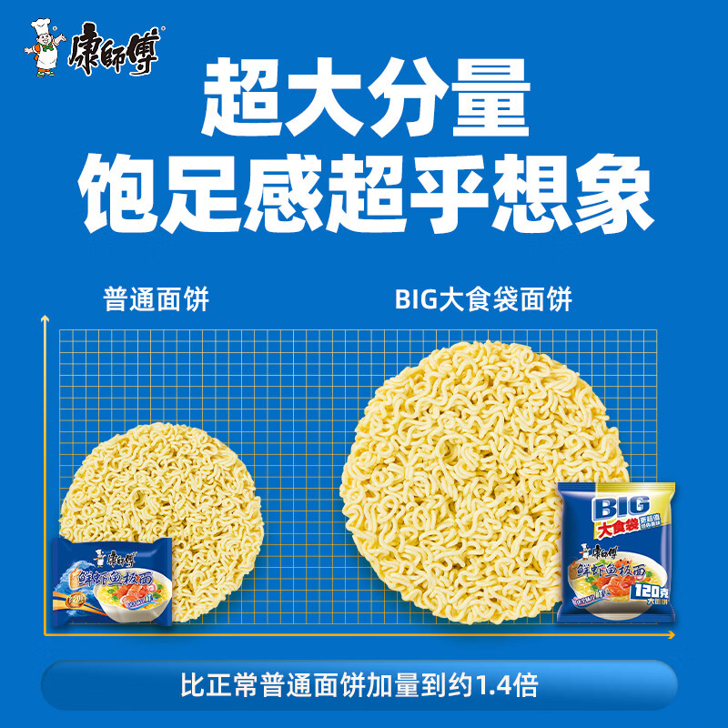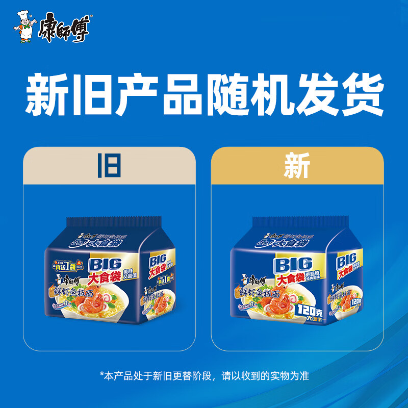 康师傅 方便面 大食袋鲜虾鱼板面五连包139g*5 泡面袋装速食 方便食品