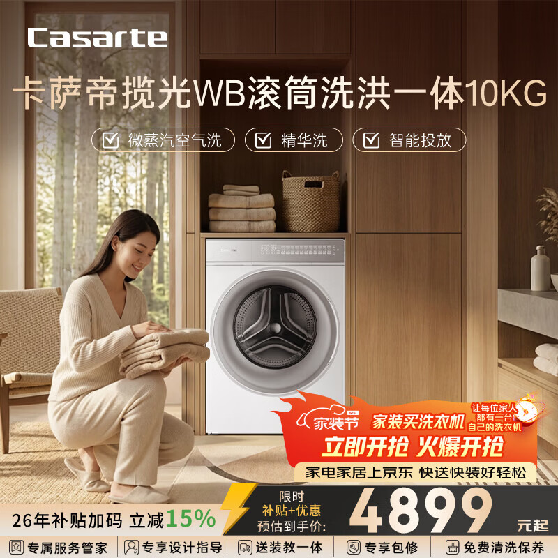 卡萨帝(Casarte)揽光WB滚筒洗烘一体10KG? 洗衣机全自动 智能投放? 家电补贴15% CE HB10LWBU1