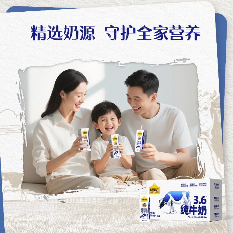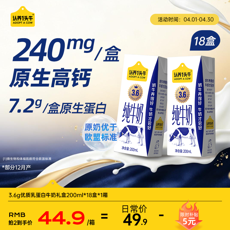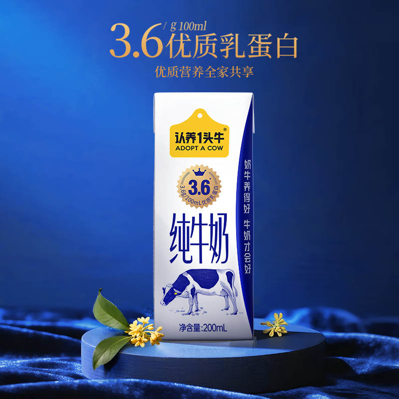 认养一头牛高钙牛奶3.6g蛋白 200ml*18盒 纯牛奶整箱 京东自营超市 家庭礼盒