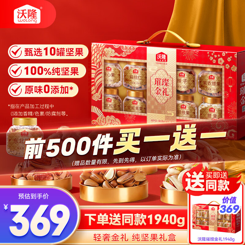 沃隆璀璨金礼高端纯坚果礼盒10罐装1940g商务送礼干果炒货节日礼盒