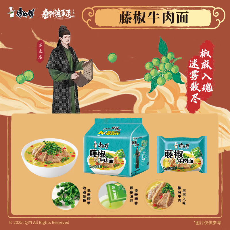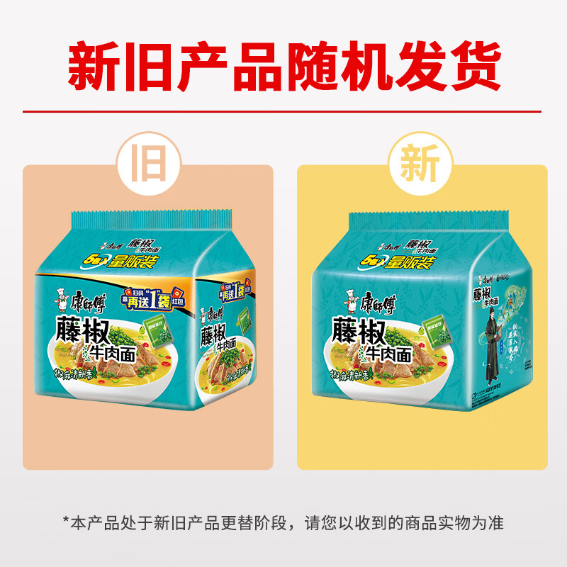 康师傅 方便面 经典藤椒牛肉面五连包103g*5 泡面袋装速食 方便食品