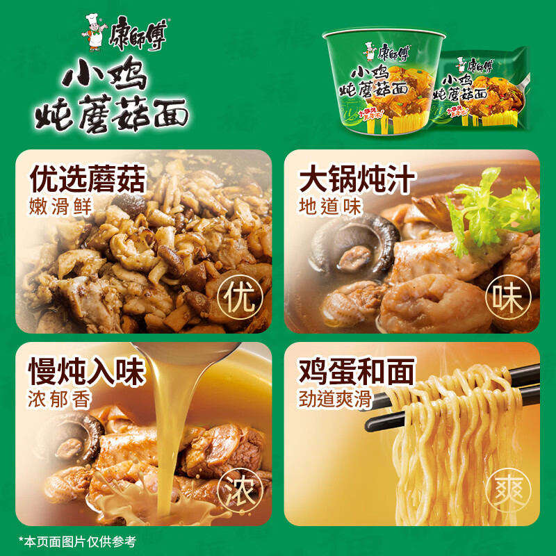 康师傅 方便面 经典小鸡炖蘑菇面五连包95g*5 泡面袋装速食 方便食品