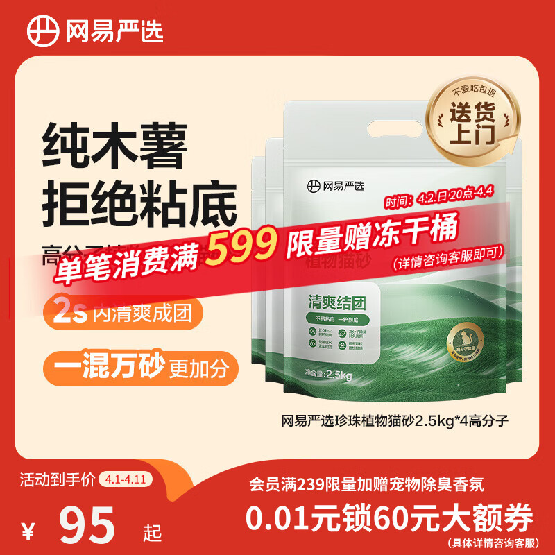 网易严选木薯猫砂不沾底强吸水易结团高分子除臭植物砂 2.5kg*4袋