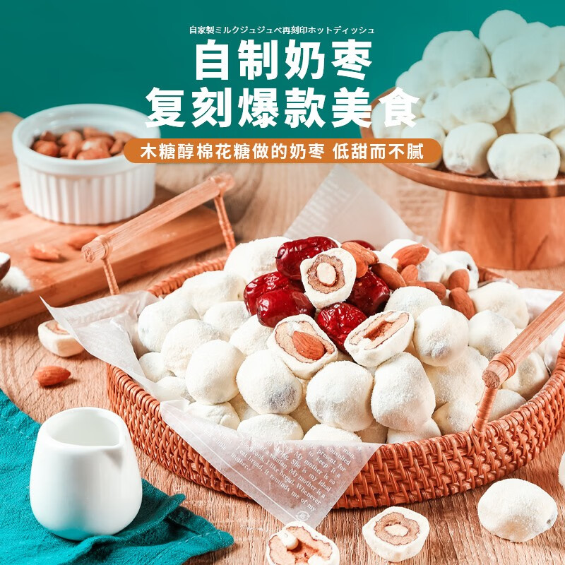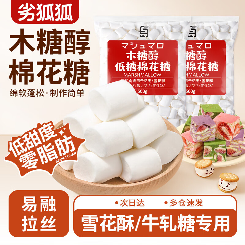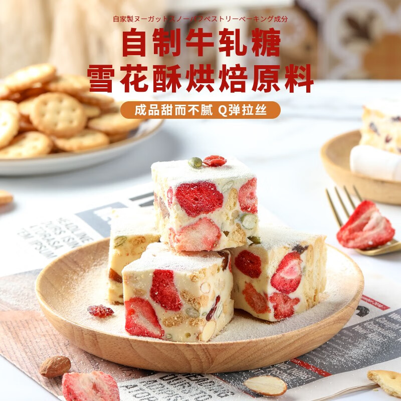 劣狐狐烘焙原料 低糖木糖醇棉花糖雪花酥奶枣杏仁500g 休闲零食
