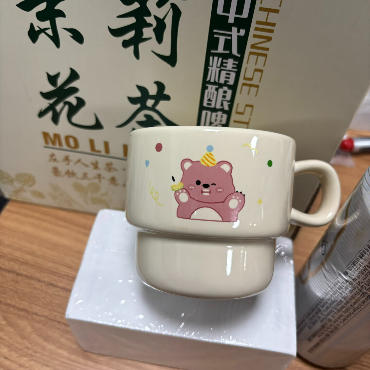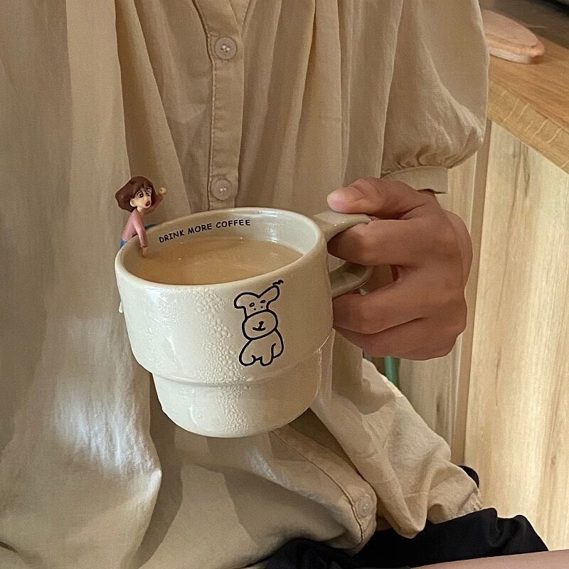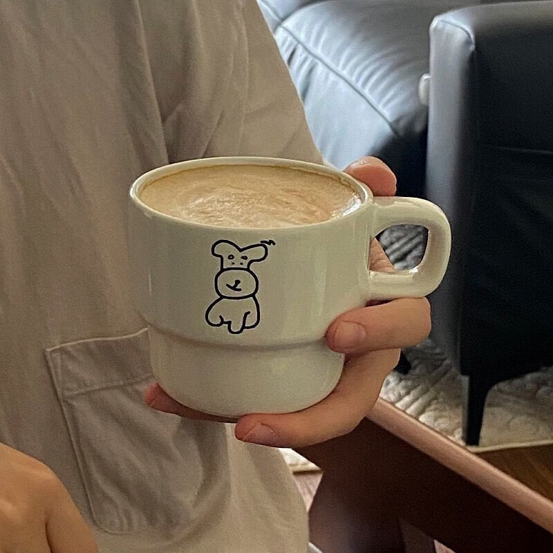 可爱卡通小狗叠叠杯宿舍办公室家用喝水杯学生咖啡牛奶早餐马克杯 奶白海狸叠叠杯 1个 300ml 狗狗咖啡叠叠杯