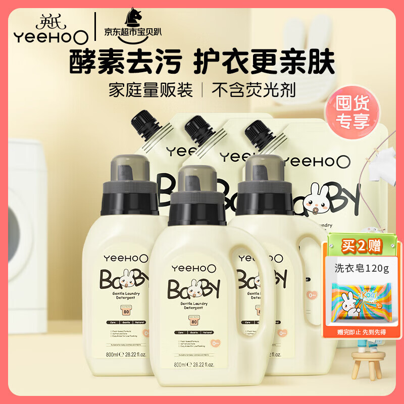 英氏婴儿洗衣液婴幼儿童洗衣液大人可用 酵素洗衣液 (3瓶3袋共7.8斤 )