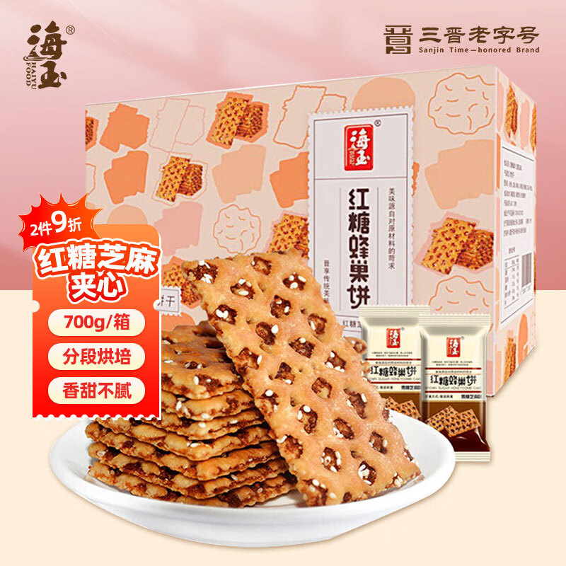 海玉红糖芝麻夹心蜂巢饼干700g酥脆点心下午茶团购休闲零食办公室节日