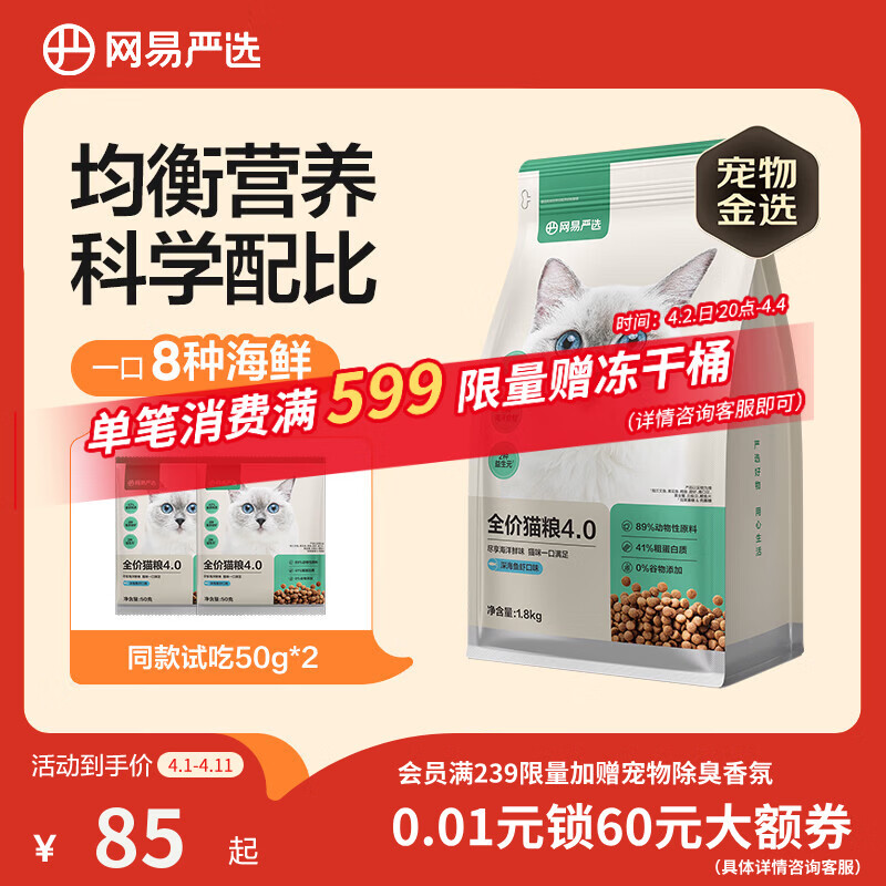 网易严选全价猫粮宠物主粮成幼猫三文鱼 深海鱼虾味1.8kg 【宠物金选】