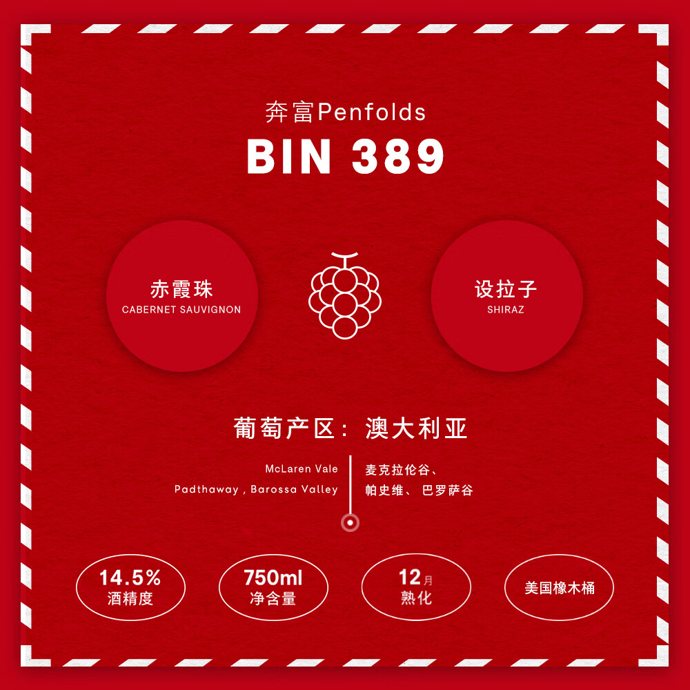 奔富(Penfolds)Bin 389赤霞珠设拉子红葡萄酒750ml*2支 双支装 原瓶进口正品行货