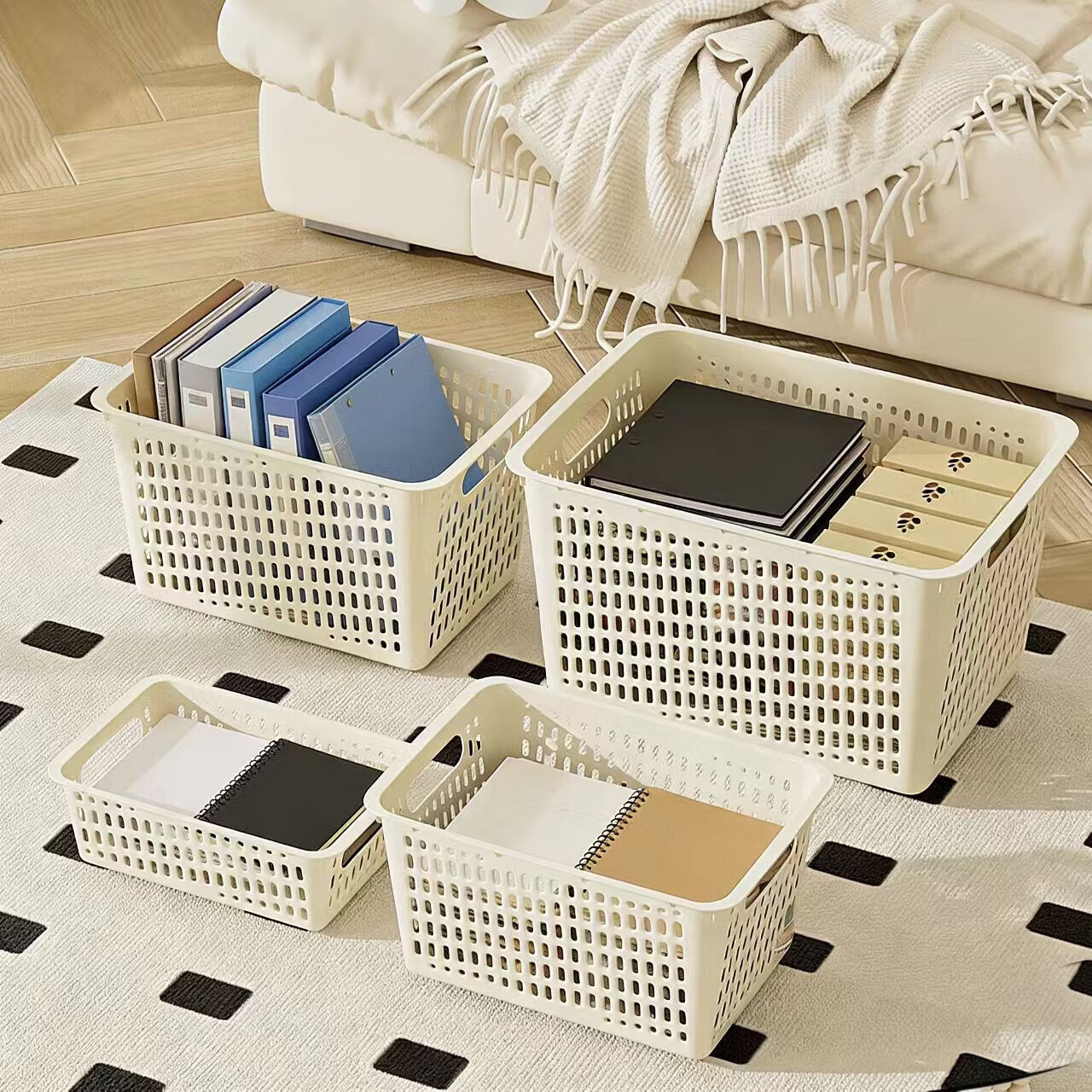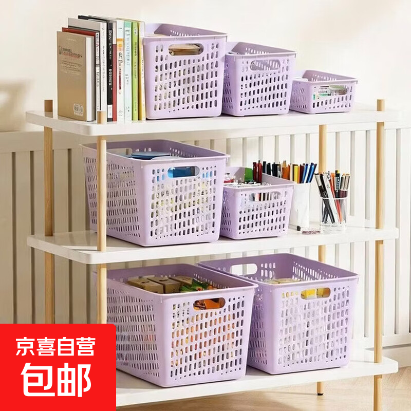办公文件筐资料框档案筐文件夹收纳盒置物框学生放书筐简易桌面收纳筐 【紫色】 中号1个
