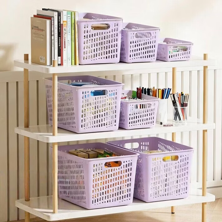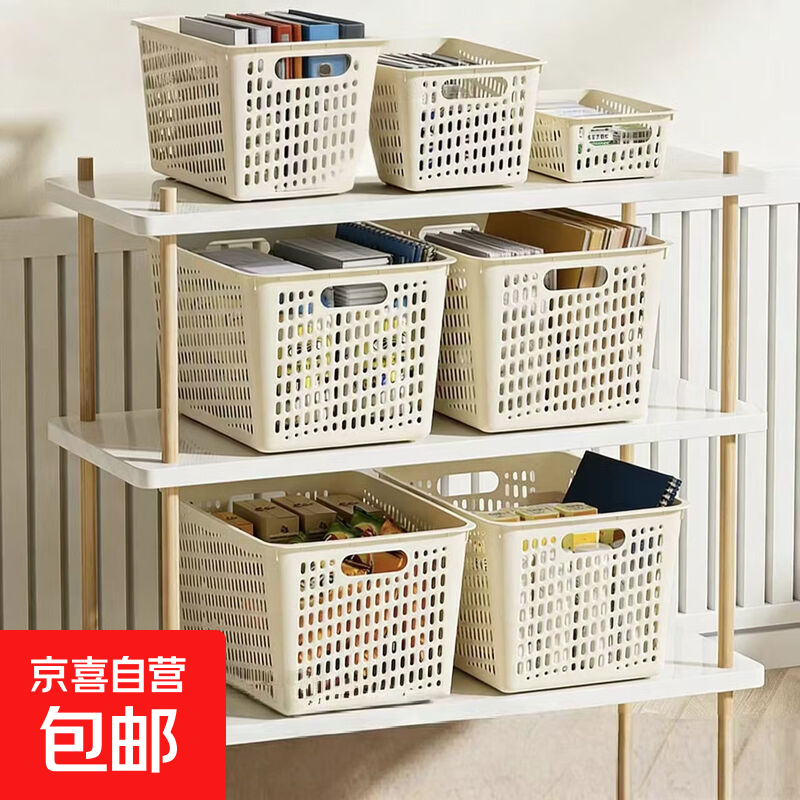 办公文件筐资料框档案筐文件夹收纳盒置物框学生放书筐简易桌面收纳筐 【奶油色】 中号2个