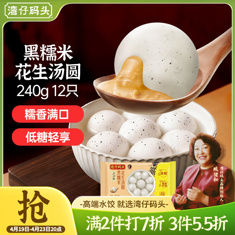湾仔码头黑糯米花生轻汤圆240g 12只元宵早餐食品速食半成品生鲜